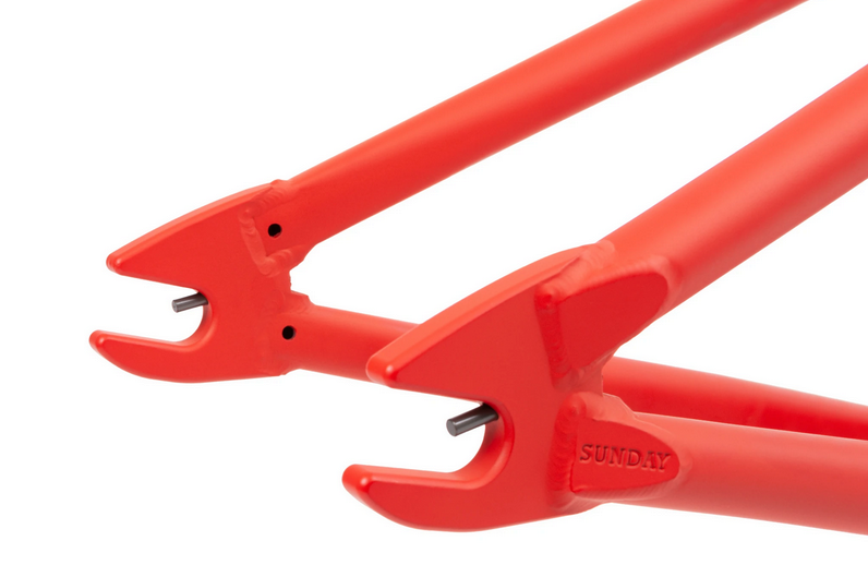 The 3rd version of the Sunday Soundwave frame, is the most advanced frame design that Sunday offers. It’s loaded with features like proven hollow dropouts, integrated chain tensioners, Wave down tube and top tube, cable channel guide, angled removable brake mounts, “Director” style wishbone, post-weld machining of the BB & HT, and full 41-Thermal post weld heat-treating throughout.